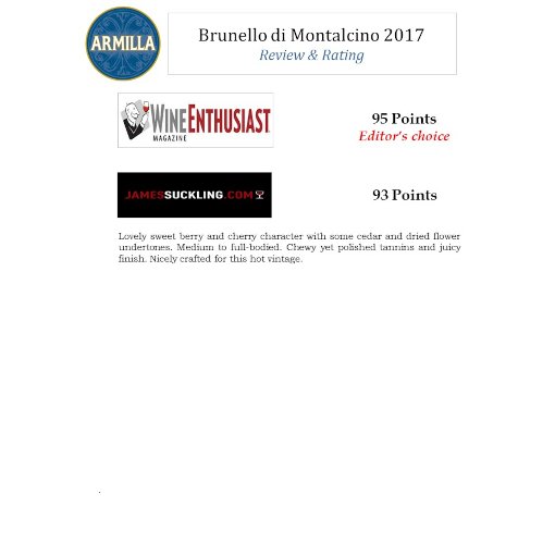 Denne Brunello har alle de karakteristika der karakteriserer en stor vin. Armilla fremstiller en traditionel Brunello med stor frugt, der efter gæring har ligget 24-30 måneder på 25 hl Slavonsk egetræ inden vinen lagres på flaske til den er klar til salg. Denne vin vil udvikle sig yderligere over de næste 10 – 12 år, men smager fantastisk nu, kræver dog dekantering.